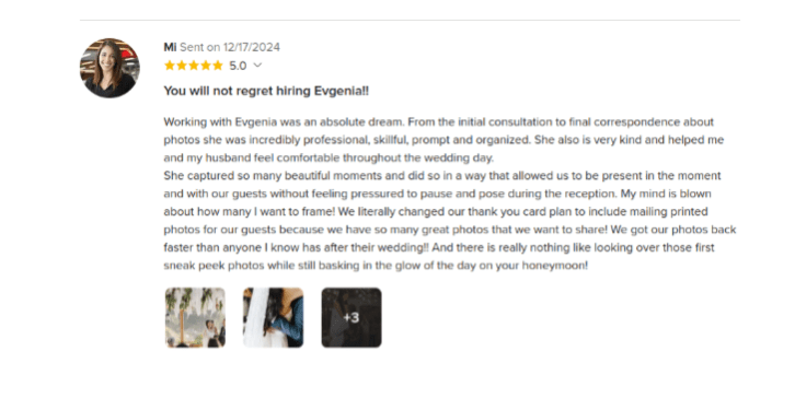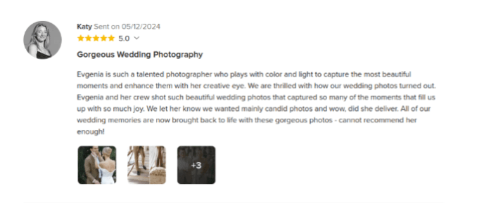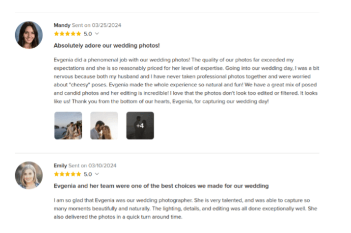 We used to collect reviews in WeddingWire, this is a testimony of some of them.